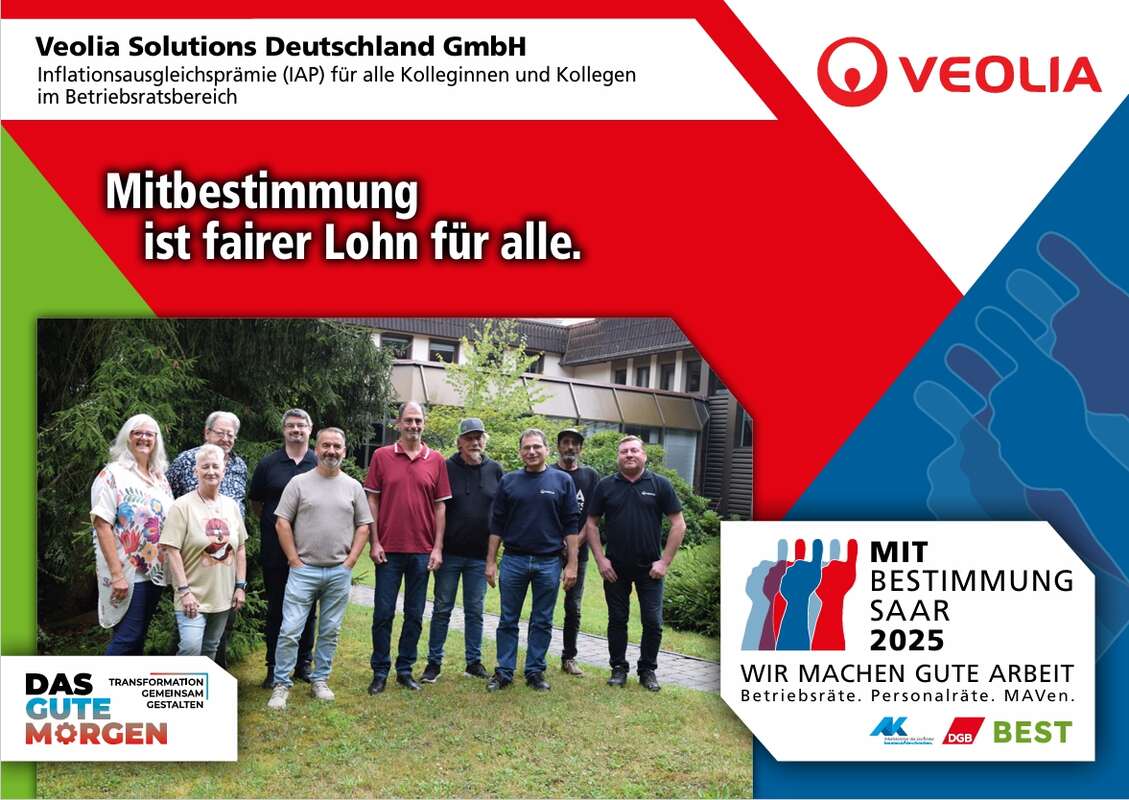 Wir sind der Betriebsrat (BR) der Veolia Solutions Deutschland GmbH (VSD). Die VSD ist Bestandteil der Veolia Gruppe und ist mit ca. 3.000 Mitarbeitenden im Bundesgebiet tätig. Im Südwesten sind wir für fast 1.100 Mitarbeitende zuständig.